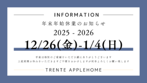 休業期間:2025年12月26日(金)~2026年1月4日(日)
